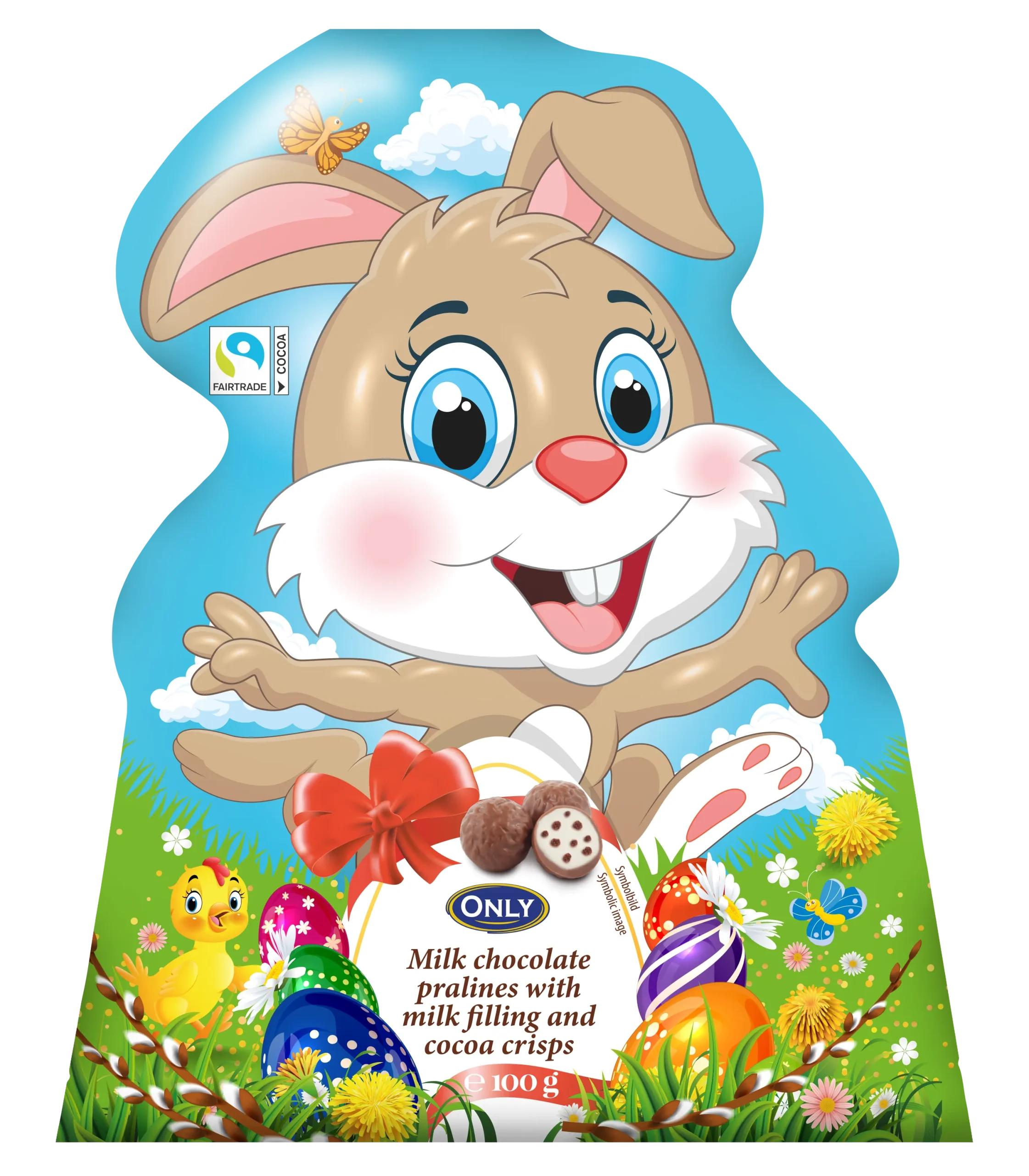 Великодній зайчик Праліне з молочного шоколаду з молочною начинкою та какао-крихтами 100г